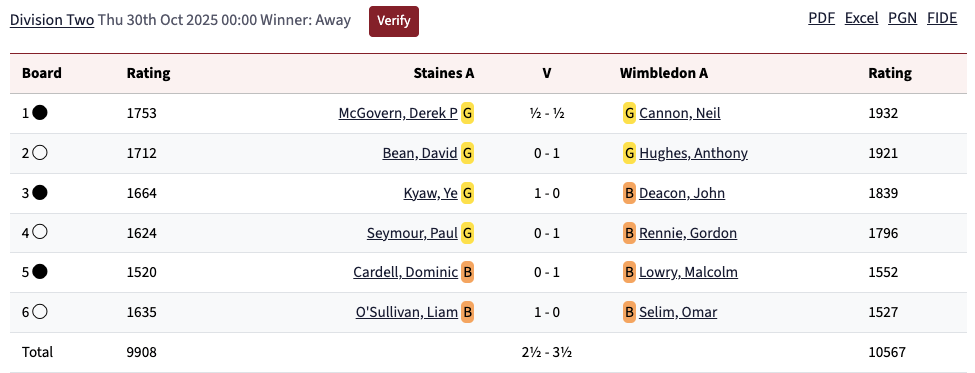 | 25-10-2023 | Away | Surbiton B | 0-6 |